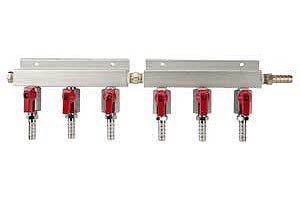 45 angle two-piece aluminum manifold. Includes six shut offs.